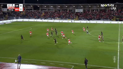 比赛一开始,节奏就完全落入本菲卡掌控之中。里奥斯的远射已经敲响警钟,只不过皮球始终未能转化为进球。卡萨皮亚则如同预料之中那样,选择深度回撤,用人数优势堵住禁区,用身体对抗消耗节奏,等待反击的那一瞬间。半场结束,狂人的球队接近70%的控球率,持续的压迫推进,以及不断制造的射门机会,却无法破门。